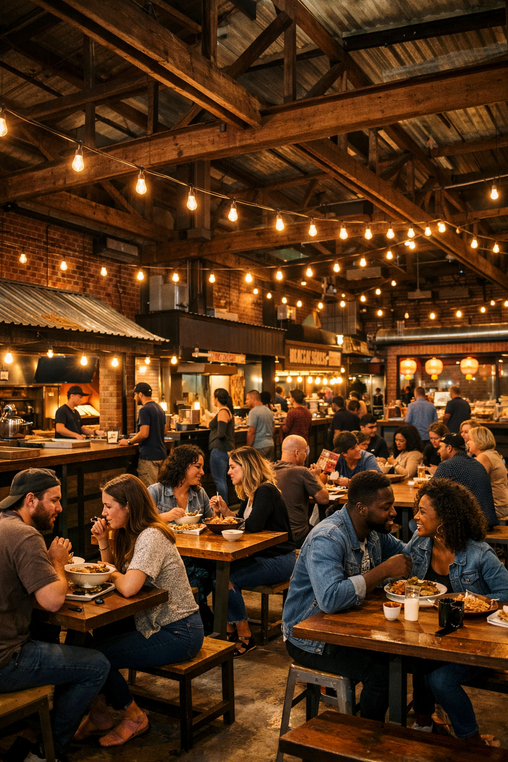 Orlando's Packing District was once the industrial engine of Florida's citrus trade — warehouses packed with fruit bound for national markets. The Great Southern Box Company building, built in 1938 by Dr. P. Phillips, still stands at the corner of N Orange Blossom Trail, now housing eleven locally-owned kitchens under one 13,000-square-foot roof. Wandering Palm's food hall crawl takes you through six of them: birria tacos from Fui Yo, Jamaican oxtails from Kayos, Neapolitan pies from Antica Pizzeria, and more. It's one of Orlando's most efficient ways to eat internationally without leaving a single building — and the history lesson is free.